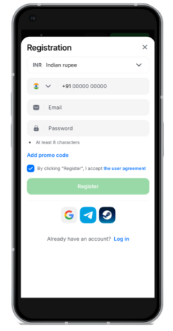 1Win app users in India can sign up quickly thanks to the app’s simple design. There are two main ways to complete registration. In the ‘Quick’ option, players enter their email and phone number. Players can also sign up using a social media account. 1Win offers sign-up through a Google account, Telegram, or Steam. After signing up, the app sets the currency to Indian Rupees (INR) to make betting easier. Players can enter a promo code that activates a new user bonus during this step, and the entire process is secured with encryption, which protects personal information: